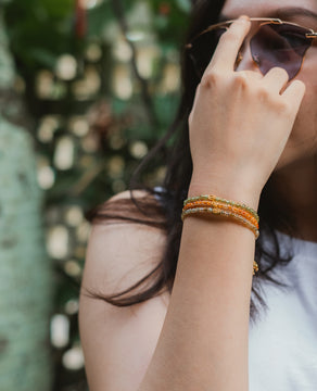Meie gemmide ja makrameega valmistatud apyrankės on loodud Balil, kus on kasutatud kuldse viimistlusega helmeid, hõbedat või kuldset niiti ning Indoneesia gemme.